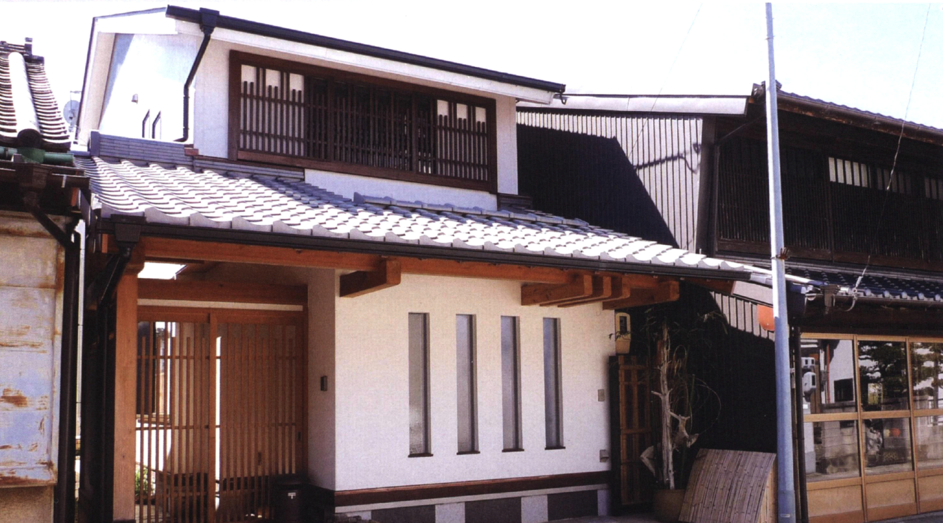 城下町の旧街道筋に建つ住宅。間□ 3 間、奥行24 間という、通称うなぎの寝床的な非常に細長い敷地ではあるが、その狭さを感じさせない内部空間と使い易い平面計画が良い。敷地幅が狭いながらも、東側に路地と古井戸を中心に据えた通り庭を設け、通風や採光にも配慮されている。取分け、昔の面影を残す街道沿いの町並…