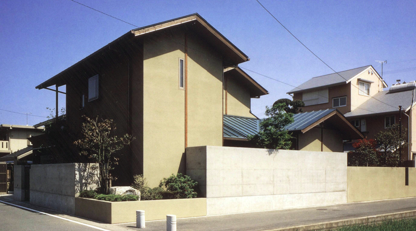 所々になまこ壁を残す市街地に建つ典型的な町家の建て替え計画で、周囲の家並みとの調和を意識した外観の中に、RCと木造の混構造の特性を十分に生かしたコートハウス形式により、町家としては考えられないほどの明る<、風通しのよい、ドラマチックな空間を実現させたものです。建て主から提出された膨大な要望にもとづい…