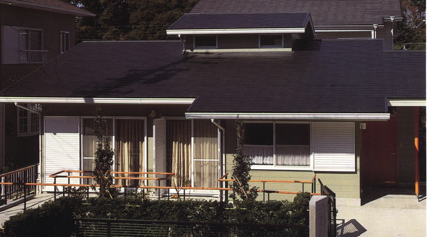 外観はふつうの木造2階建ての戸建専用住宅ですが、頚椎損傷による障害のある建築主が自立して暮らせるようにという明確な目標のもとにつくられています。建築主は先行例となるお宅に泊まりがけで訪れ、県の住宅相談にも何度か足を運び、計画に当たっては納得がいくまで追求をあきらめずに研究しました。また設計者も施工者…